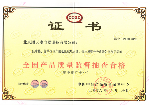 全國(guó)產(chǎn)品質(zhì)量監(jiān)督抽查合格證書2006