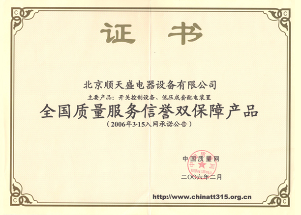 全國(guó)質(zhì)量服務(wù)信譽(yù)雙保障產(chǎn)品2006年315入網(wǎng)